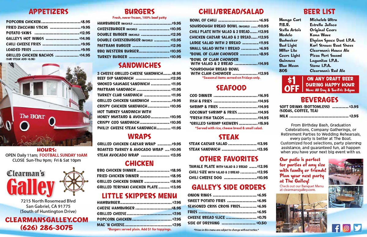 Welcome to Clearman's Galley, a beloved family restaurant located at 7215 Rosemead Blvd, San Gabriel, CA 91775. Often playfully referred to as “The Boat,” this gem is more than just a dining spot; it's a vibrant experience where food and fun set sail together!